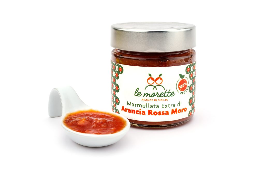 Il gusto intenso delle nostre Arance Rosse Moro Le Morette racchiuso in un vasetto da 280 grammi di marmellata extra, preparata con il 120% di frutta.